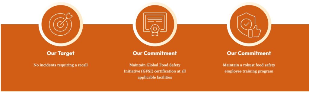 In addition to our internal efforts, we recognize the importance of collaboration in advancing food safety practices industry-wide. To this end, we actively engage with regulatory bodies such as the U.S. Department of Agriculture’s Food Safety and Inspection Service and the U.S. Food and Drug Administration. We also work closely with various industry associations on projects aimed at improving food safety standards and enhancing consumer protection. Through these partnerships, we contribute to and benefit from the latest developments in food safety technology and best practices.